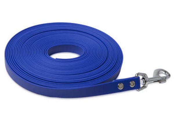 Deze gepatenteerde uitvinding van het Amerikaanse bedrijf BioPlastic is oorspronkelijk uitgevonden voor de behoefte van paarden. Door zijn unieke eigenschappen is dit materiaal ook zeer geschikt voor het trainen van honden en het werken met hen. Een van de basismaterialen is biologisch materiaal bedekt met plastic. Met deze geweldige combinatie is BioThane extreem bestand tegen scheuren (tot 450 kg), waterdicht, bestand tegen UV-straling, antibacterieel en schimmelwerend. BioThane herinnert aan het leer, maar is veel duurzamer en gemakkelijker schoon te maken. Dankzij de extreem lage slijtage voor bijna elke omstandigheid is het zeer geschikt voor gebruik in de jacht of training met speurlijn of speurtocht en voor alle soorten hondentraining die kracht en duurzaamheid vereisen. Tracking lijn wordt voltooid zonder handvat.