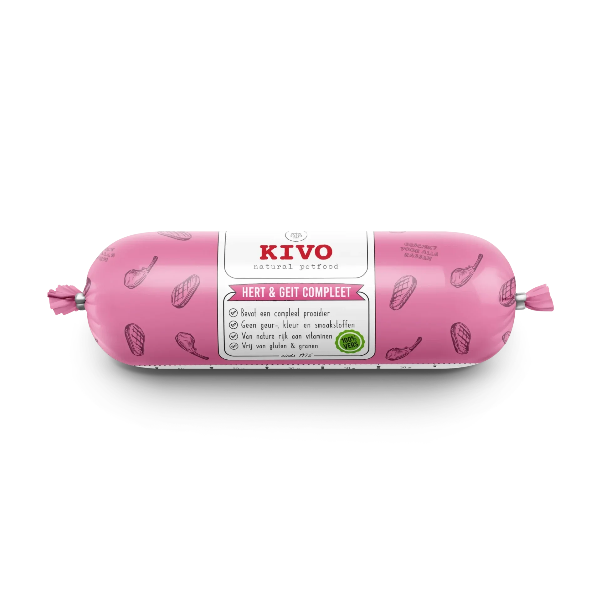 Deze maaltijd bestaat voor 80% uit vers hertenvlees en voor 20% uit vers geitenvlees.